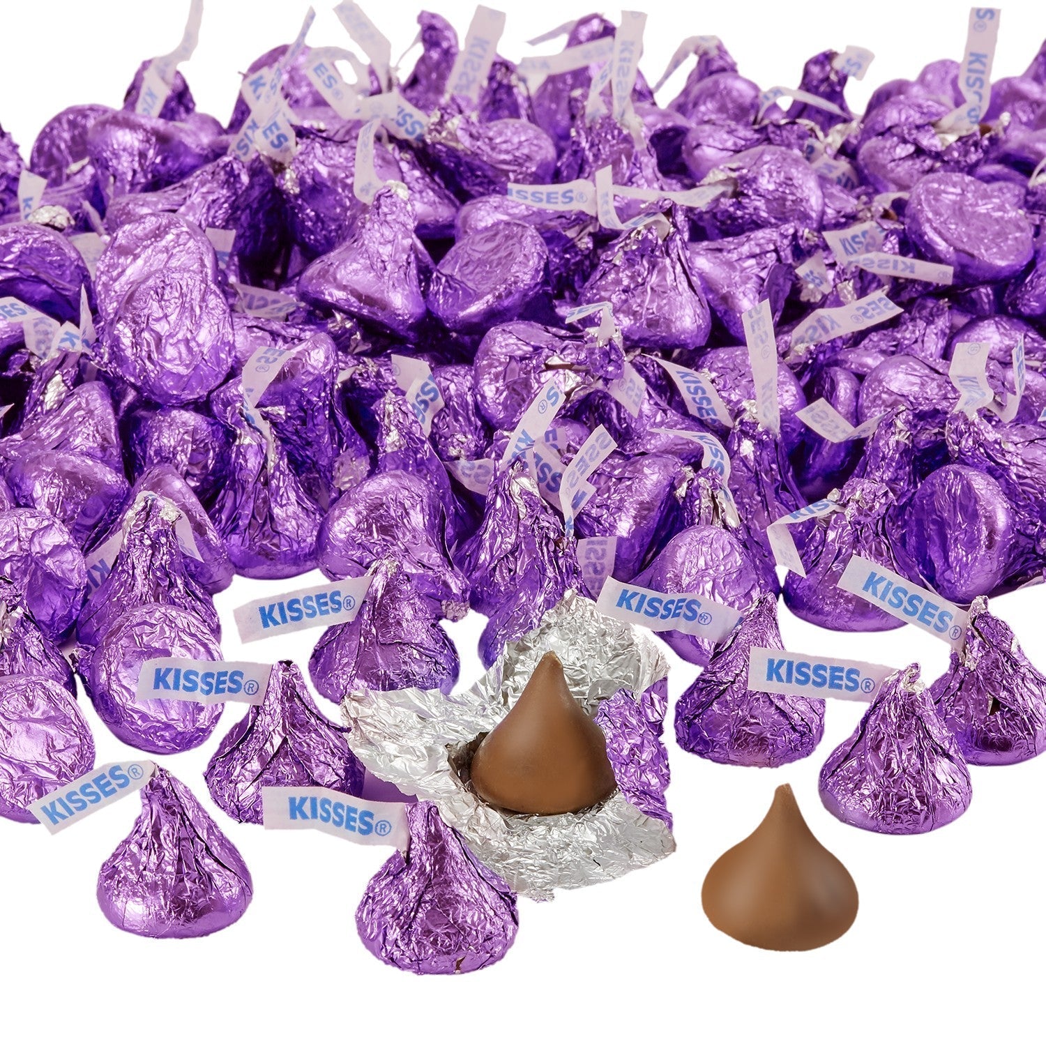 Elegant and fun, Hershey's Kisses in purple foil bring a regal touch to your candy setup. Smooth milk chocolate at its best, now in your party's color.