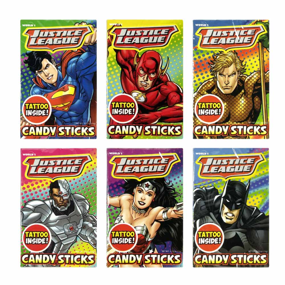 Superhero-themed and chewy—World’s Justice League Stick candy delivers fruit flavor with DC character packaging for a bold treat that packs a punch.